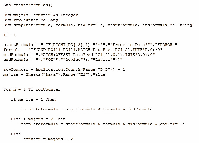 Visual Basic for Applications (VBA) is a programming language that can be utilized in each of the Microsoft Office Applications to automate routine tasks and create custom solutions for your business. In a recent solution developed by BPM Technologies, we automated a process that compared data in one column to that of another column. The process took the client several hours each time the task was completed and had to be completed twice a week or more.